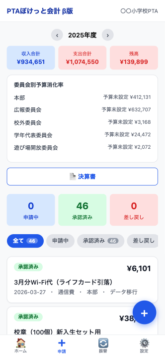 委員会ごとの予算消化率をリアルタイムで確認。年度末に慌てて集計する必要がなくなります。